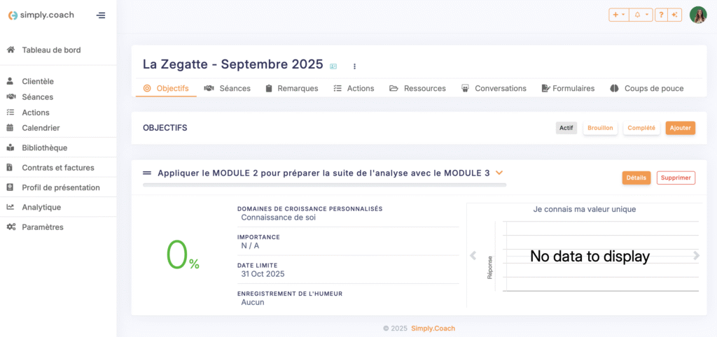 En rejoignant la formation digitale Shar-e, vous bénéficiez d’un accès complet à SimplyCoach, une plateforme intuitive et interactive qui centralise tous les contenus de formation. Vous pourrez suivre les modules à votre rythme, revoir les vidéos, consulter les supports et avancer selon votre emploi du temps, tout en gardant une expérience fluide et structurée.